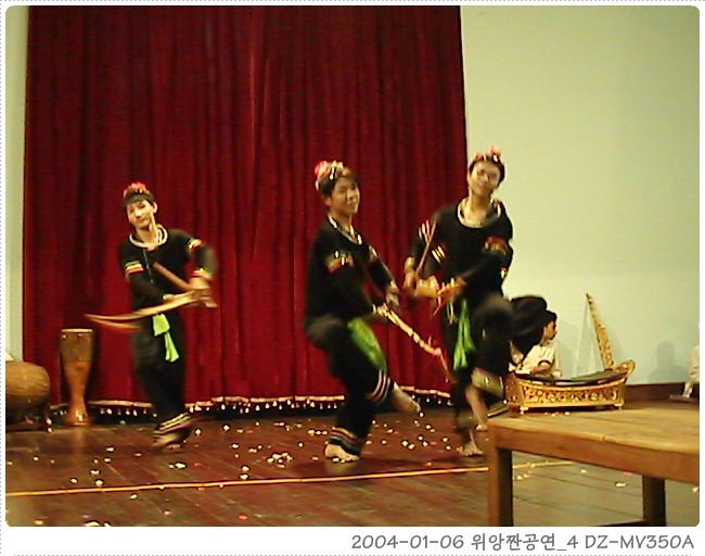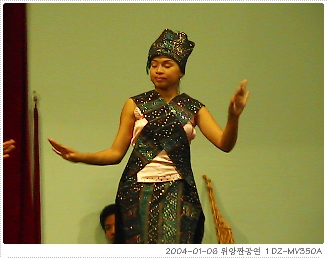 숙소에서 각자 다시 쉬다가 7시에 나와 숙소 옆의 국립극장(미을회관을 상상하시라)에서 전통극을 예매한 뒤 아까봐둔 사천요리 식당에 가서 저녁을 먹었다. 식당은 무척 고급스럽고 가격도 요리들이 2-5달러로 무척비싼 편이었지만 나오는 요리는 무척 맛있었다. (비싸다고는 하지만, 한국에서 만원이 넘는 것을 2달러에 먹으며 비싸다는 말을 하다니...) 우동(1달러, 거의 2인분), 면볶음(2달러 이것도 2인분), 쇠고기 볶음, 볶음밥을 시켰는데 요리가 하나씩 하나씩 천천히 나오는 것이 아무래도 공연시간이 맞지 않을 것 같아 볶음밥을 싸달라고 웨이터에게 아무리 이야기를 해도 전혀! 영어가 통하지 않는다. 한참을 쓱싹거리다 조금 영어가 통하는 직원이 와서 이야기를 하는데 결국 싸온 것은 쇠고기 볶음.(-_-;;) 이게 아니었다고 하니 미안하다고 해서 그냥 오케이~ 하고 나왔다. 이야기가 안통했던 점원은 상당히 미안해 했는데, 그렇게나 영어를 못해서 어쩌나 몰라. 초등이전 수준 회화 불가능...쩝. 싸온 쇠고기 볶음은 저녁에 숙소 2층 베란다에서 라오라오와 곁들여 먹었는데 맛도 좋고 양도 많았다. 겨우겨우 공연시간 맞춰 입장. 공연장은 국립극장 2층 강당이었는데 생각보다 사람이 적다. 관객이라고는 우리들 4명을 합쳐 겨우 20여명 수준. 다양한 춤과 노래, 전통무용들이 나왔고 마지막으로 라오스식 전통 결혼식이 나온다. 관객은 결혼식의 하객이 되어 술도 받아먹고 같이 춤을 추는 것으로 2시간 정도의 공연이 끝난다. 마당극 형식으로 되어 있어는데 사회보시는 분이 한국사람으로 우릴 보고 매우 반가워 하신다. 해안이를 공연에 끼워 넣고 신경을 많이 써 주셨다. 해안이도 즐거워하고 모두 재미있게 봤다. 공연 중에 사회보시는 분이 갑자기 안녕하세요! 해서 깜짝 놀랐었는데, 이 공연 사장 겸 기획자랜다. 위앙짠에 너무나 문화적인 행사가 없어 직접 꾸미신 것이라 한다. 역시 한국인이라 마당극 형식으로 하셨구나.... 한국 사람이 라오스까지 와서 그 나라의 전통문화를 알리는 일에 앞장선다니... 대단한 일이다. 공연을 많이 홍보해 달라고 부탁도 하셨다. ()