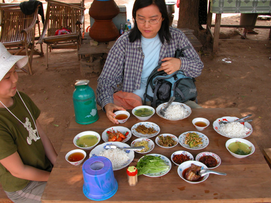 노천 정식집에서 차려나온 한상. 총 1450짯(약 1800원) 짜리 식사입니다. 고급식당도 이와 비슷함