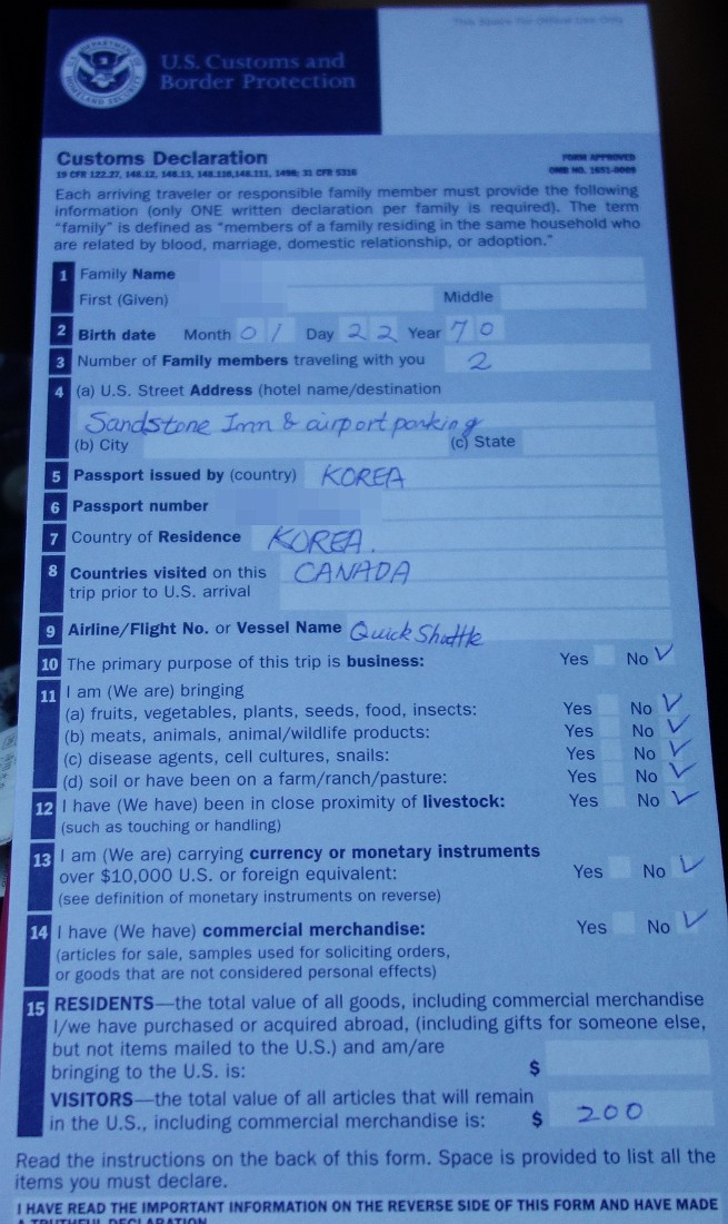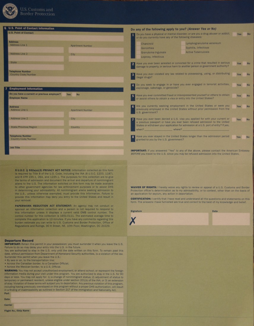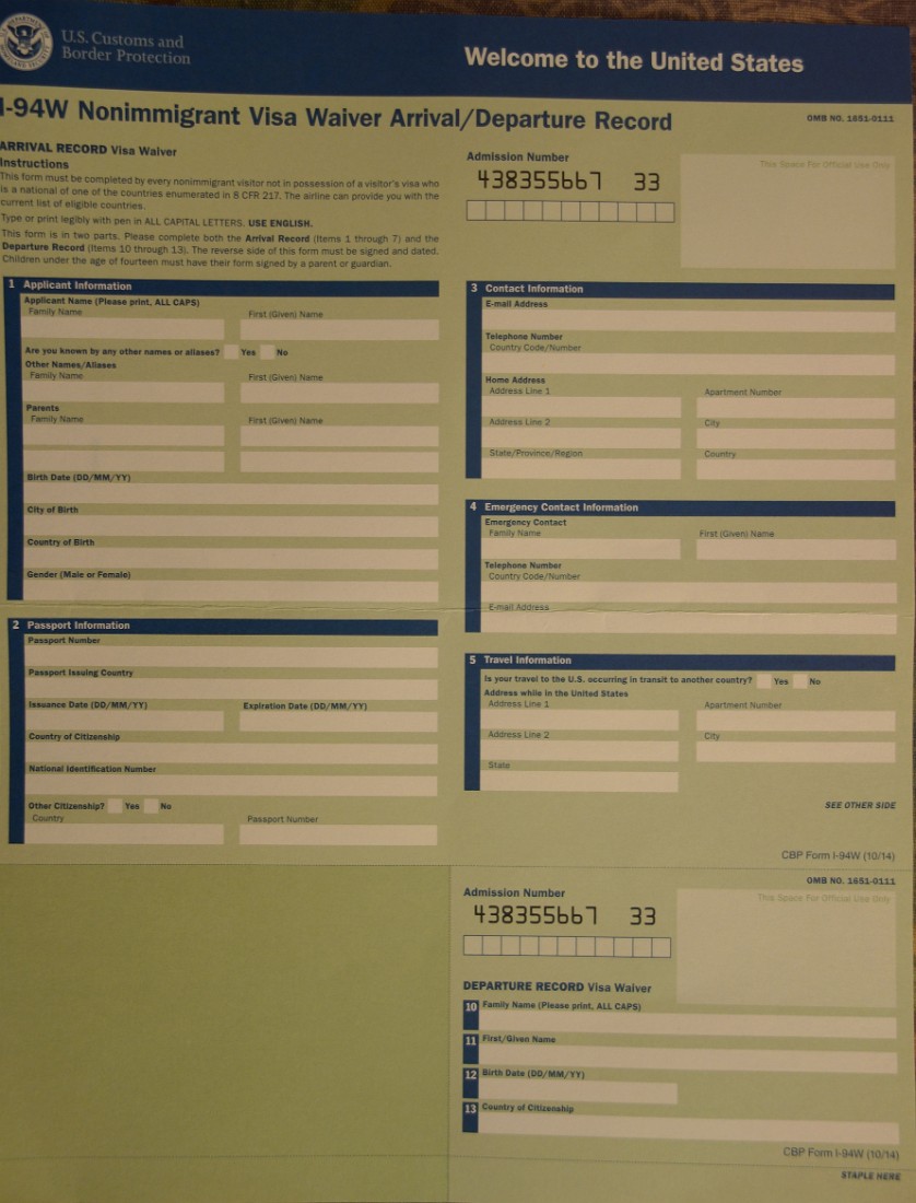 미국 입국서류 폼